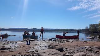 We embarked on a few projects on this trip. One of these was a Andy Goldsworthy-inspired attempt at nature art. This is a snapshot of the first stage of our island on an island. Every time I passed the spot, something else had been added - a minature tent, path and fire; an island on the island's island (!), more boats, a beach and so on.